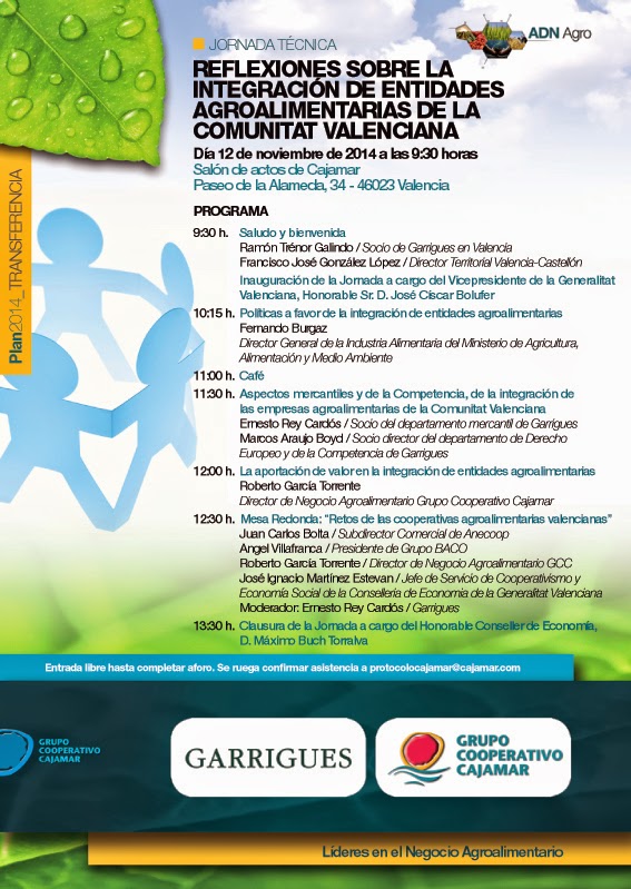 11.30 h. Aspectos mercantiles y de la Competencia, de la integración de las empresas agroalimentarias de la Comunitat Valenciana Ernesto Rey Cardós / Socio del departamento mercantil de Garrigues