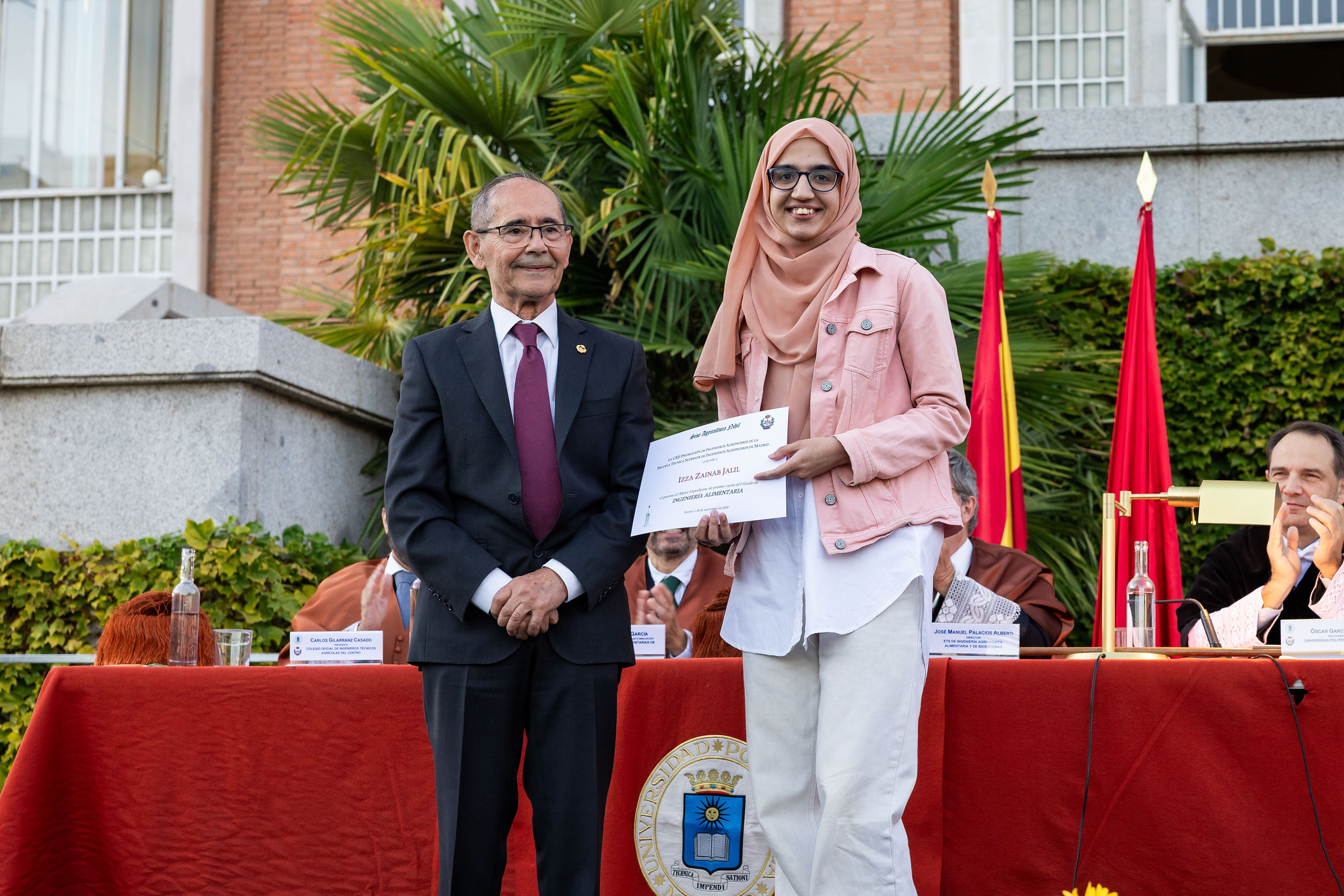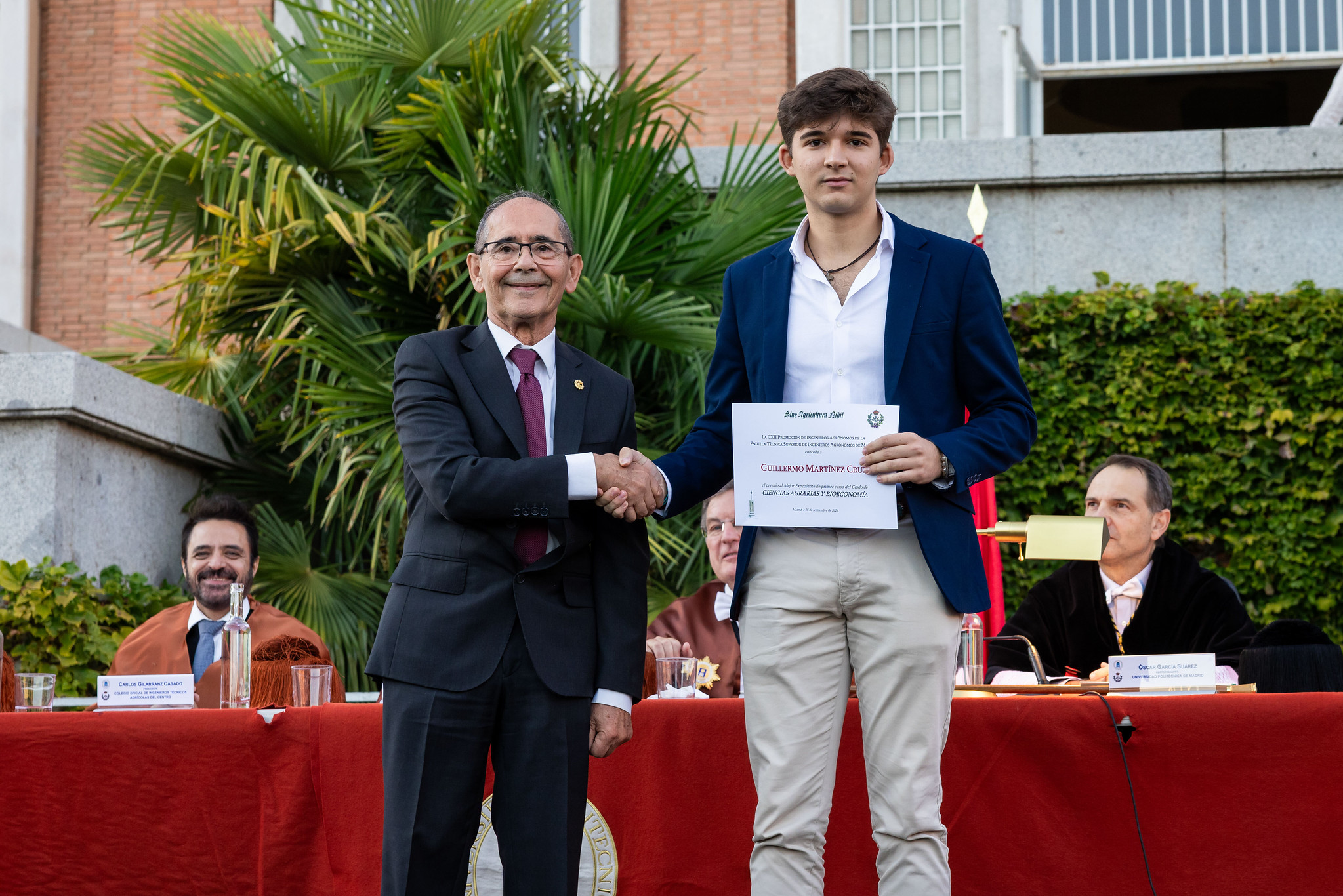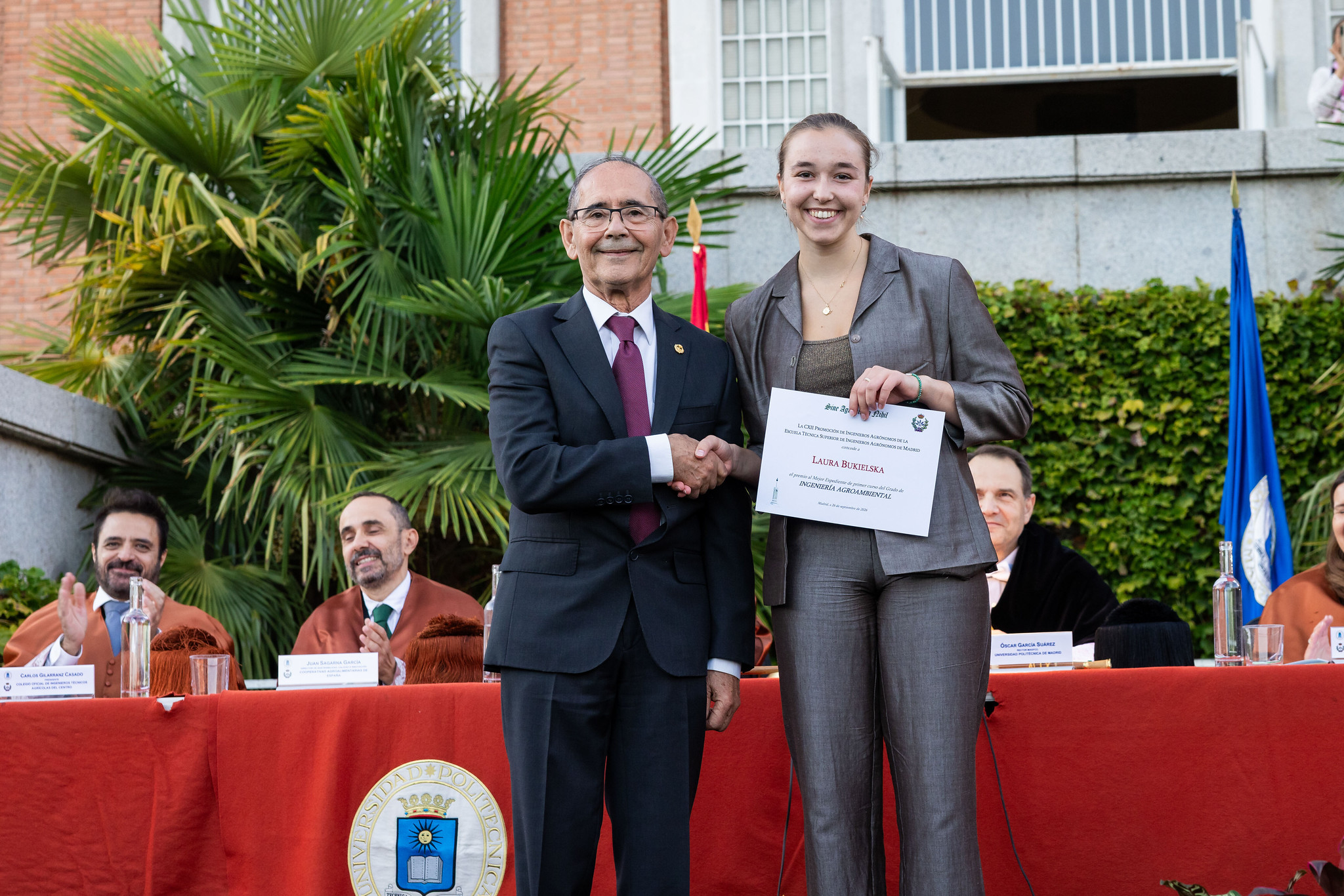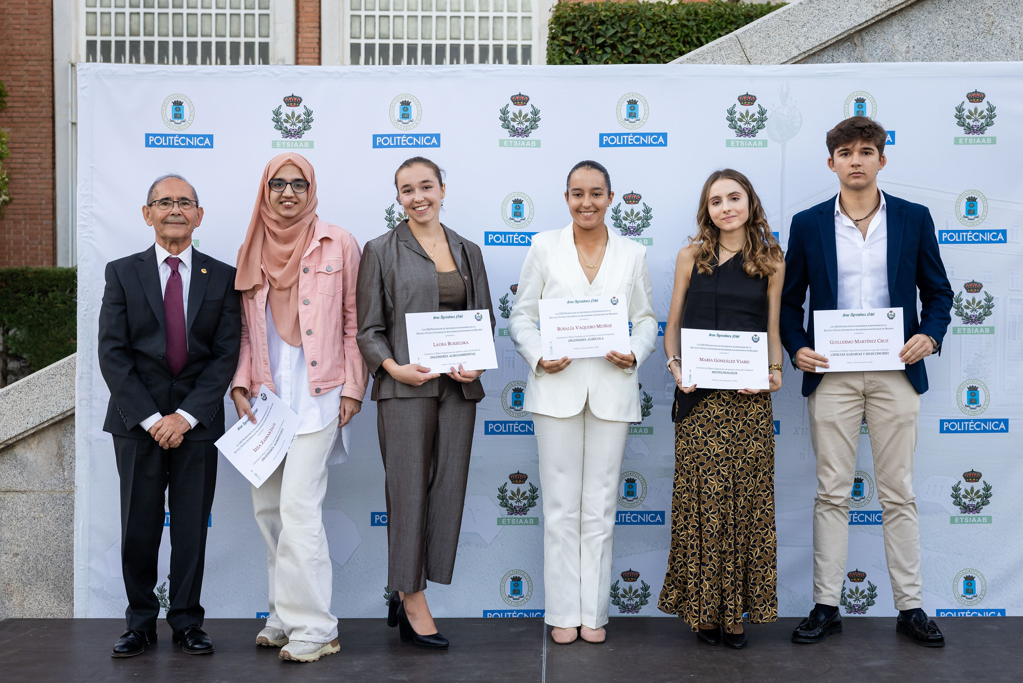 Se han vuelto a entregar (por sexta vez!) los famosos Premios 112 a los cinco alumnos más destacados de primer curso 2024-2025 de la Escuela Técnica Superior de Ingeniería Agronómica, Alimentaria y de Biosistemas de Madrid que ofrece la Promoción 112 de Ingenieros Agrónomos en el marco de la Fundación Premio Arce. En esta ocasión nuestro compañero Alberto González Moreno, Dr. Ing. Agr. y antiguo profesor de la Escuela, ha tenido la amabilidad de entregar los premios en nombre de la Promoción 112.