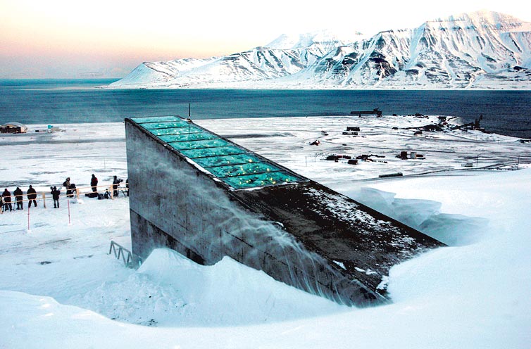 En el archipiélago noruego de Svalbard, en el Ártico, escondida bajo una montaña a 120 metros de profundidad, se encuentra la “Bóveda del Fin del Mundo” o Cámara Global de Semillas de Svalbard, preparada para resistir terremotos, explosiones nucleares, erupciones volcánicas y otros cataclismos.
