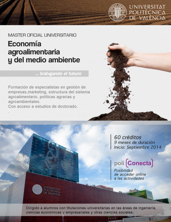 Está abierto el período anticipado de preinscripción para el curso 2015-2016, del Máster Universitario en Economía Agroalimentaria y del Medio Ambiente, que se conoce como Tanda cero. A este periodo de preinscripción únicamente pueden optar los estudiantes con titulación extranjera que no tengan nacionalidad de la Unión Europea ni residencia legal en la misma, y les permite realizar la preinscripción y recibir la aceptación, en su caso, con varios meses de antelación.
